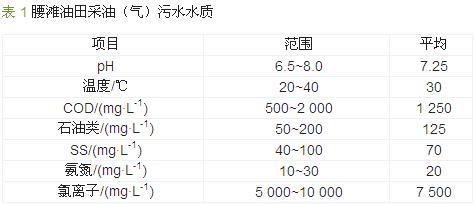 腰灘油田采油(氣)污水水質(zhì)情況見表 1